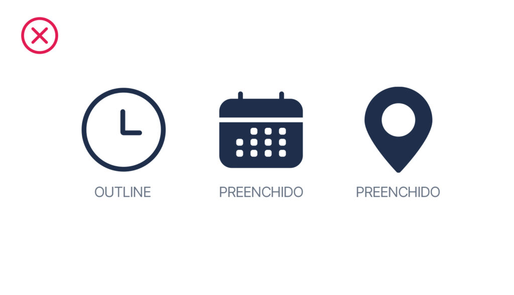 → Usar ícones com estilos contrastantes (traço fino + traço grosso).