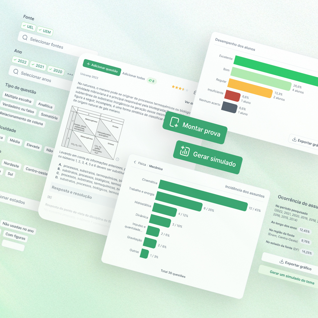 Docentes do Ensino Fundamental Anos Finais, Ensino Médio e Ensino Superior que adquirem créditos para gerar, de forma independente, provas, listas de exercícios e simulados alinhados às diretrizes da BNCC, ENEM e ENADE.